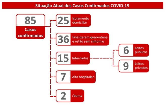 Os números foram divulgados nesta quarta-feira (8) durante coletiva de imprensa. Na somatória 36 casos foram curados.