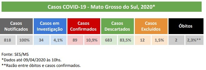 Por enquanto, com dois óbitos, a taxa de letalidade em Mato Grosso do Sul é de 2,3%. O secretário de saúde, Geraldo Rezende, lembra que o Estado continua disputando o “desonroso último lugar em isolamento com o estado de Tocantis”.
