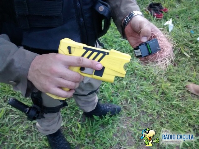 Na perseguição um dos policiais correu a pé em direção de um dos ocupantes do veiculo o alcançado a aproximadamente a 800 metros do local e na tentativa de para-lo, utilizou-se da sua arma de eletrochoque que não foi suficiente para imobiliza-lo. Mesmo atingido o elemento se voltou contra o policial que foi obrigado a sacar a sua pistola e alvejalo no perna direita.