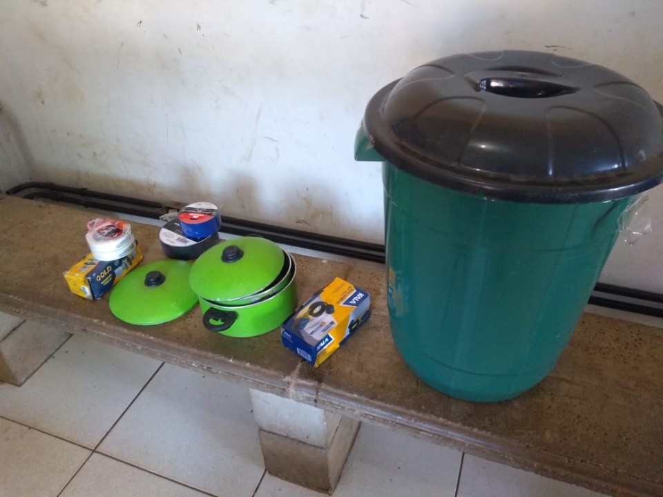 Do local foram levados um tanquinho de lavar roupas, um cesto de 50 litros, três panelas, uma fechadura, um cabo boia e dois rolos de fita.