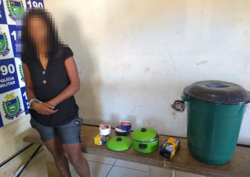 A autora e os objetos apreendidos foram encaminhados para a 1ª Delegacia de Polícia Civil para as medidas cabíveis.