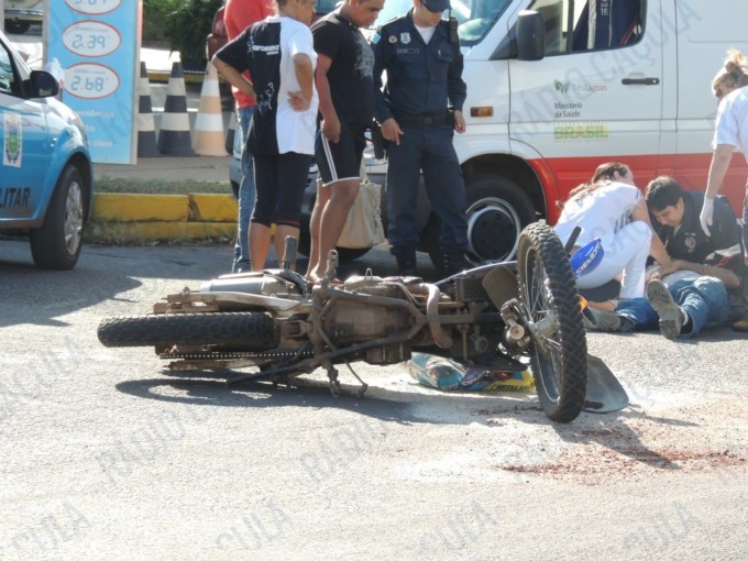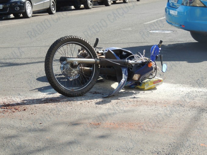 O rapaz de 26 anos, que guiava sua motocicleta Honda Tornado de cor azul, bateu na lateral traseira da camionete, vindo cair ao solo e sofrendo escoriações pelo corpo.