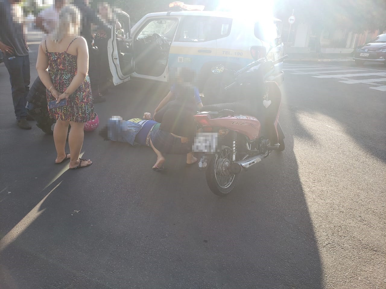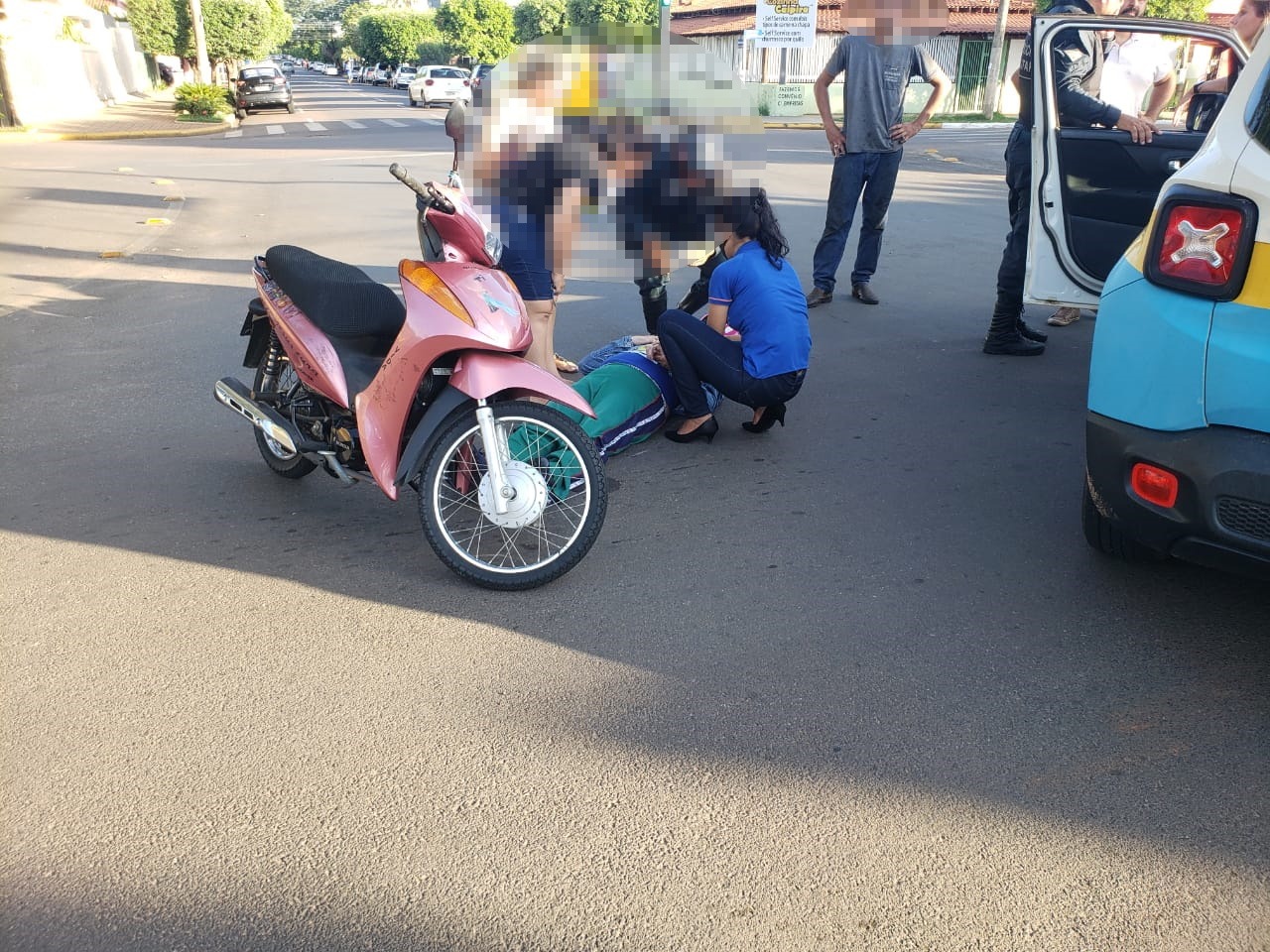 TRÊS LAGOAS: No final da tarde desta quarta-feira (09), uma mulher que pilotava uma moto Honda Biz ficou ferida ao se envolver em um acidente de trânsito, na área central de Três Lagoas.