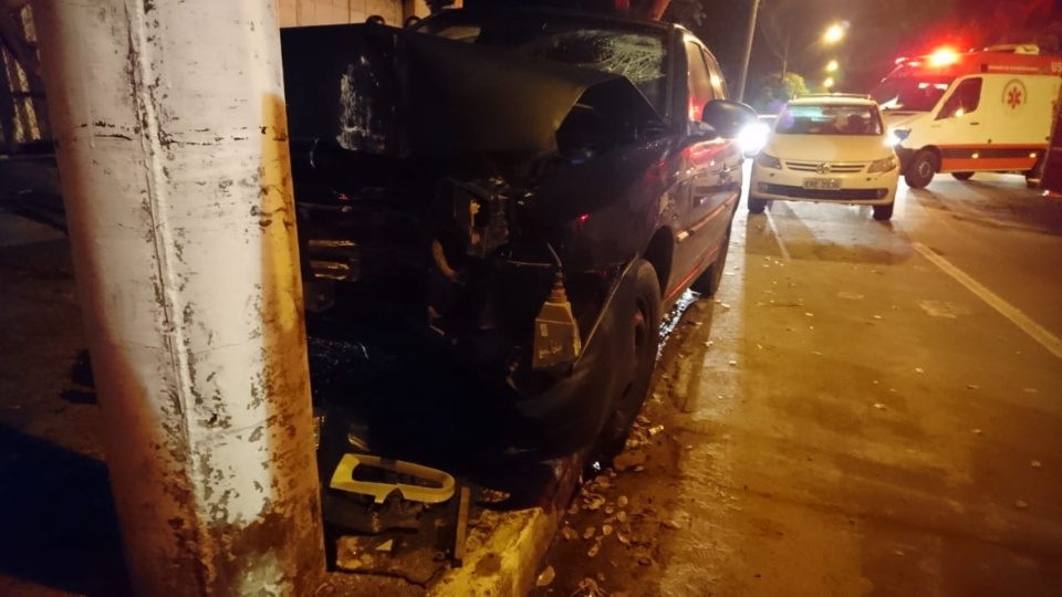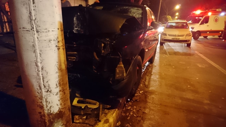 No início da madrugada de domingo (03), às 00h40min, uma mulher identificada como C. O. da S. F. N. que estava dirigindo um veículo VW/Gol perdeu o controle do carro e bateu de frente com o poste na Avenida Filinto Müller, no sentido Bairro-Centro, próximo ao antigo Jatobazão.