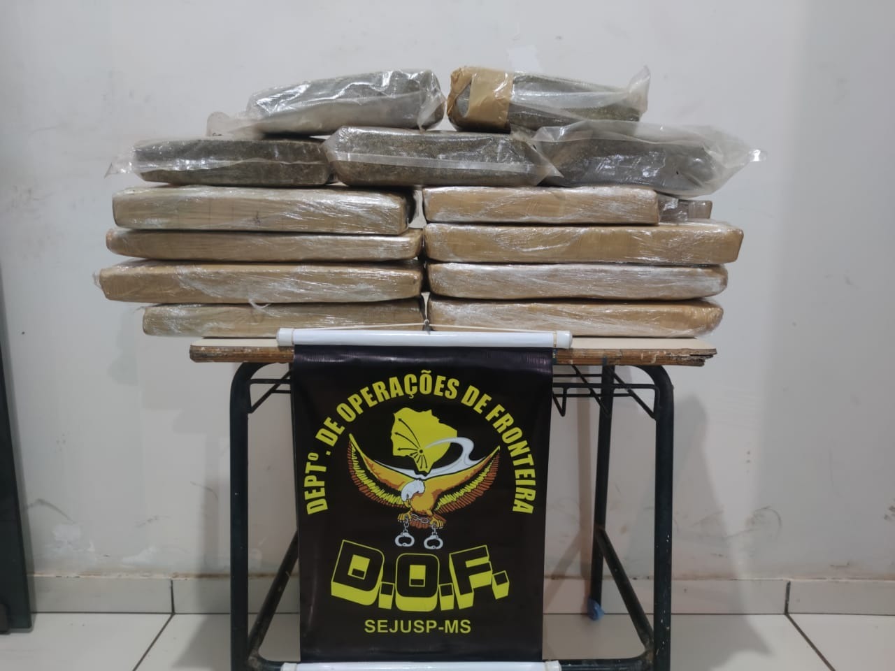 MARACAJU (MS) – Policiais do Departamento de Operações de Fronteira (DOF) prenderam, na madrugada de hoje (19), uma mulher de 22 anos de idade que seguia para Belo Horizonte com 20 quilos de maconha, distribuídos em 21 volumes prensados. A ação ocorreu em virtude da Operação Hórus, parceria da Secretaria de Estado de Justiça e Segurança Pública com o Ministério da Justiça e Segurança Pública, durante um bloqueio policial para fiscalização na rodovia MS-164, região de Maracaju.
