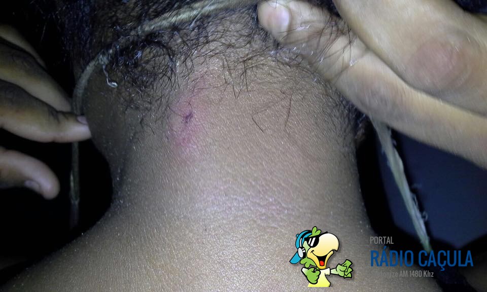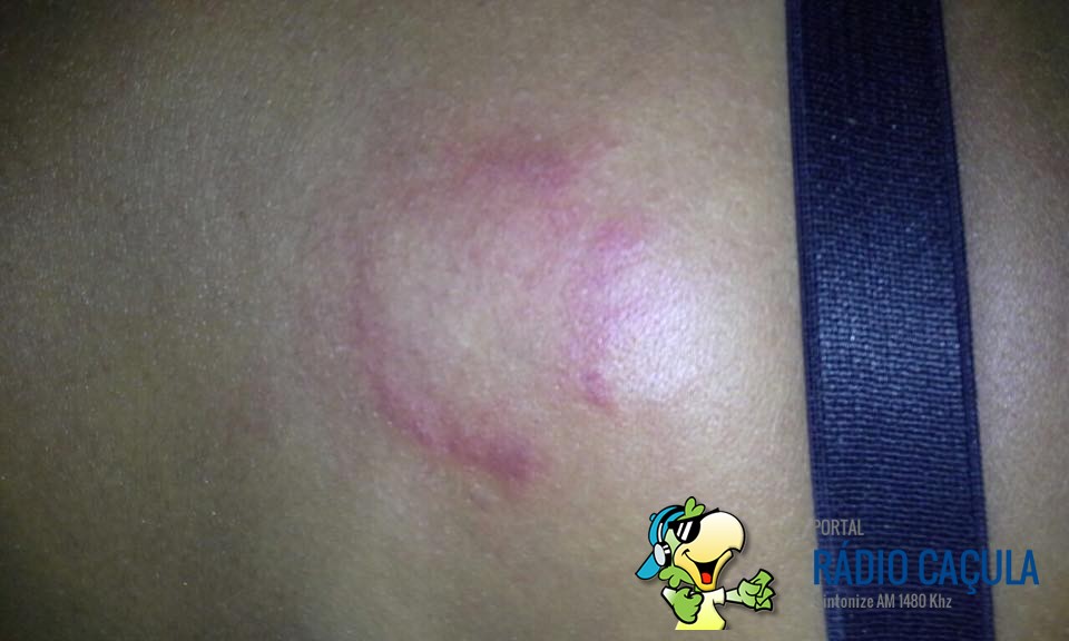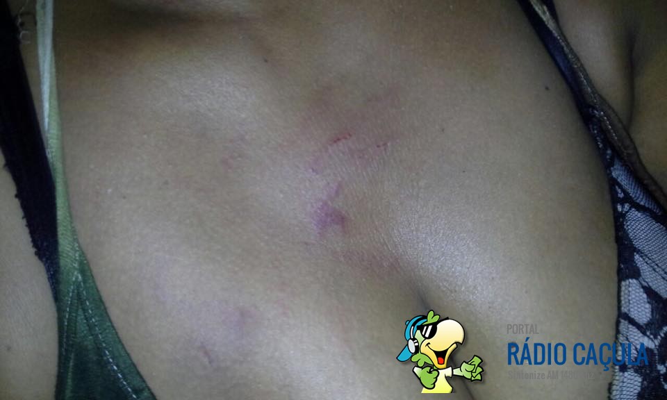 Ao chegar no local, a equipe foi atendida pela senhora J.S., que relatou que seu marido F.S.C, 22 anos, chegou em casa alcoolizado e passou a agredi-la, atacando a vitima com diversas mordidas na altura do pescoço, seios e costas.