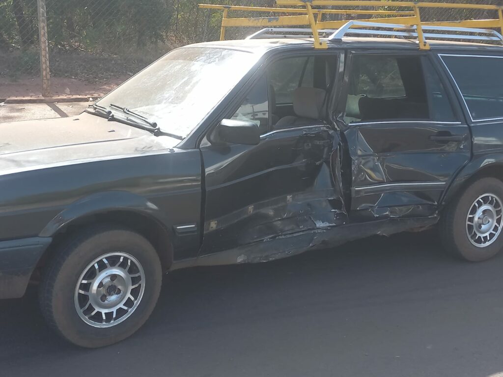 Por volta das 9h30, uma motocicleta CB300, conduzida por uma mulher acabou por colidir na lateral de um Del Rey preto que fazia uma conversão na avenida sentido bairro/centro.