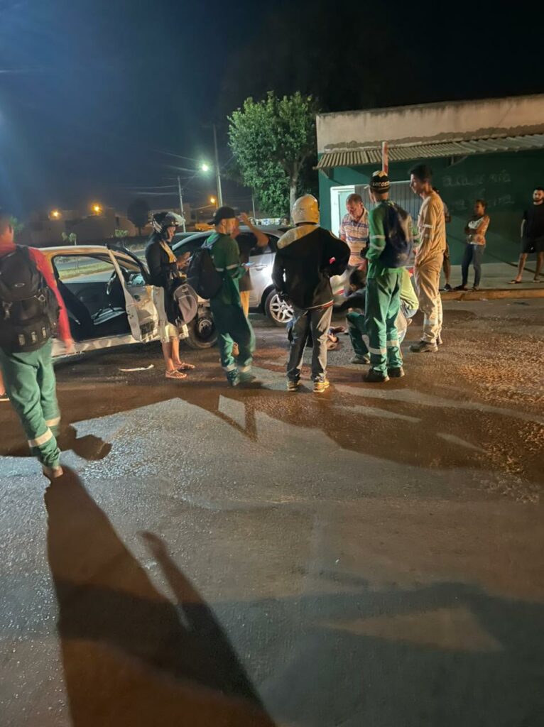 Acidente envolveu dois carros e uma moto, sendo necessário socorrer vítima ao Hospital Auxiliadora.