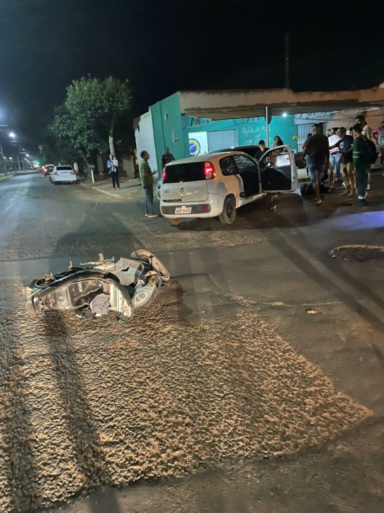 No local, por volta das 19h, um veículo Biz conduzida por uma mulher sentido bairro/centro colidiu com um Voyage prata devido ao impacto, e um Uno branco sentido Ginásio de Esportes, que quando foi fazer a conversão, não viu a motocicleta.