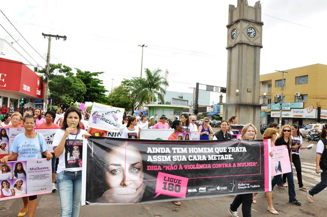 Com o apoio do Pelotão de Trânsito da Polícia Militar e de uma ambulância do Corpo de Bombeiros (UR-43), um grupo de mulheres portava faixas e cartazes, ao som de assobios e de batidas em tampas de panelas, chamando à atenção da população “pelo fim da violência contra a mulher” e com o apelo “Não Se Cale”.
