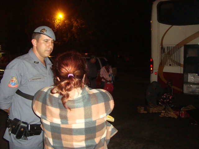 Os PMs encontraram outros 23 tabletes (14 quilos) de maconha na bagagem da outra passageira, E.C.R.S., 43 anos, que é de São Paulo. Informalmente, ela admitiu que tinha sido contratada para levar o entorpecente do Mato Grosso do Sul para a capital paulista.
