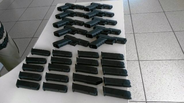 No carro ainda foi localizado 10 pistolas Glock calibre 9 mm, 20 carregadores do mesmo calibre e outras 260 munições .50, utilizado para derrubar aeronaves e furar blindagens e muros de concreto.