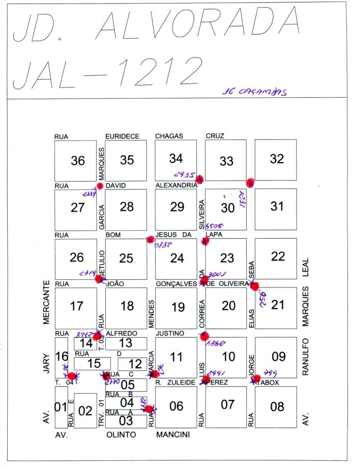 As caçambas da PMTL estão disponíveis nas seguintes ruas, do bairro Jardim Alvorada: