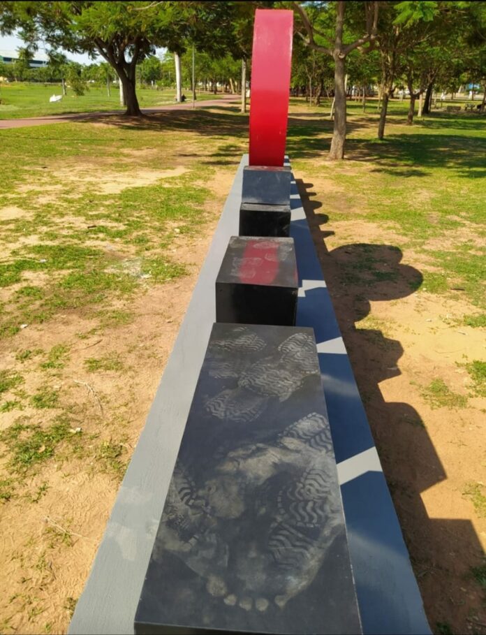 No local é possível ver as marcas de pés em cima das letras, mostrando que diversas pessoas subiram no monumento e algumas chegaram a caminhar sobre as letras.