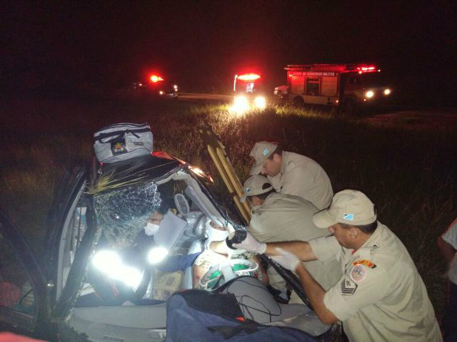 Mulher capota carro em acidente na BR 262 e é retirada com uso de alicate hidráulico