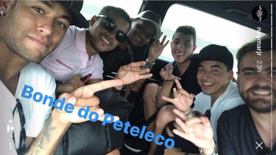 No vídeo postado por Neymar aparece a legenda ‘bonde do peteleco’, numa alusão de que quem perdesse o game levaria um ‘peteleco’ na orelha.