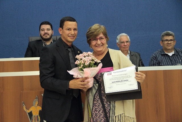 Foram homenageadas, com a entrega de moções de congratulação, as seguintes personalidades, destacadas nas áreas de educação, comércio e prestação de serviços, notadamente serviço social: Adolfina Rodrigues de Oliveira, com 100 anos de idade; Leônidas Batista de Freitas, comerciante do ramo de alimentação, mais conhecido como “Seu Nego”; professora e ex-diretora do Colégio Dom Aquino Corrêa, Marizeth Bazé Kill; Vitor Gaiotto e Marcelo José Gorga, empreendedores e promotores de evento ciclístico; professora de educação física, Inozemar de Souza Fraga, pelos 34 anos de dedicação à profissão de educadora; empresária e voluntária da Rede Feminina de Combate ao Câncer, Ivanir Batista dos Santos; e a professora e ex-presidente da Rede Feminina de Combate ao Câncer, Alda Barbosa Monteiro de Campos.
