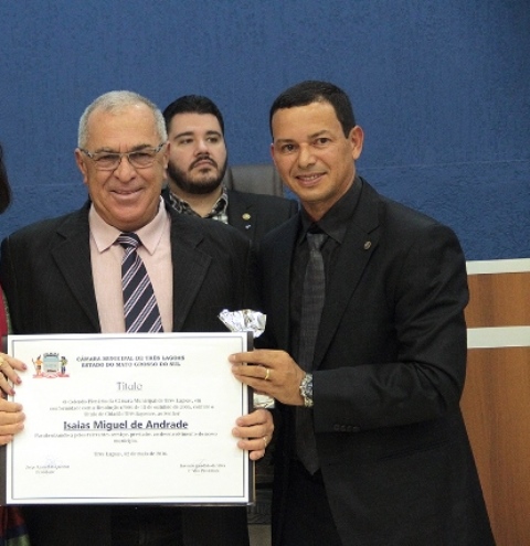 Foram homenageados com a outorga de Título de Cidadão Três-Lagoense: empresário da indústria, Wilson Roberto Pelinson, natural de Itu (SP) e em Três Lagoas desde 2007, quando aqui instalou a indústria de fabricação de vergalhões, fios e cabos elétricos, IFC Indústria e Comércio de Condutores Elétricos Ltda. – COBRECOM, geradora de mais de 100 empregos diretos; e o engenheiro civil e pastor da Igreja Peniel, Isaías Miguel de Andrade, nascido na zona rural de Pernambuco e há pouco mais de dois anos em Três Lagoas, onde é consultor e fiscal da obra de construção da ponte rodoviária sobre o Rio Paraná, ligando os estados de Mato Grosso do Sul e São Paulo.