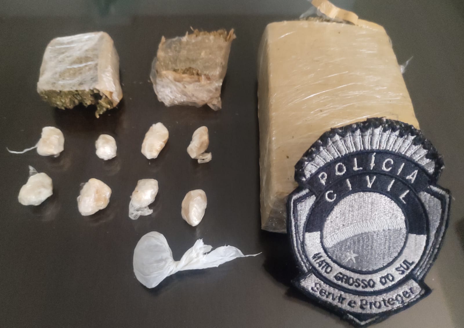 Em continuação, os policiais civis vistoriaram o imóvel, quando encontraram uma sacola com três tabletes de maconha, além de mais uma trouxinha da droga. As drogas estavam guardados em uma parte de um armário, onde tinha outros pertences do preso.
