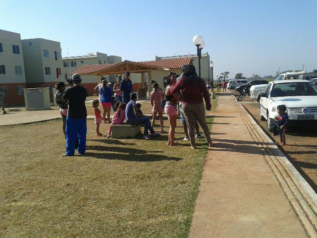 Reunidos na área comum do residencial, os moradores relataram que os seguranças da empresa agem como agentes penitenciários, dando ordens, impedindo a entrada e saída de condôminos e seus visitantes, alem de durante a noite fazerem rondas pelos blocos “estalando” máquinas de choque.