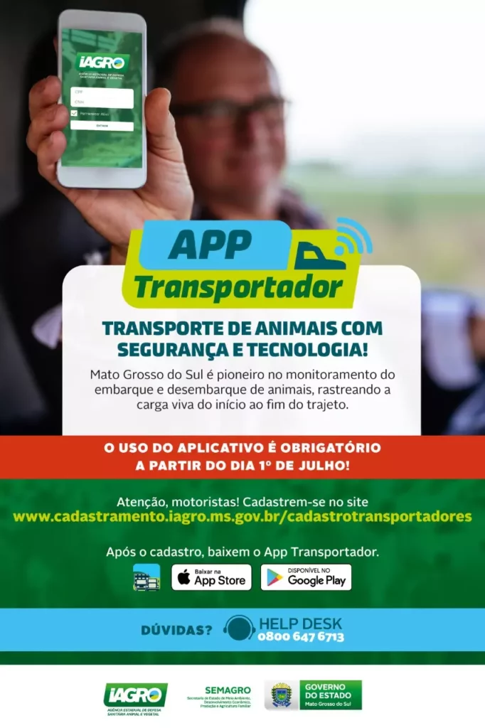 Mato Grosso do Sul (MS) – Aplicativo Transportador, da Agência Estadual de Defesa Sanitária Animal e Vegetal do Mato Grosso do Sul, será obrigatório para transportadores de animais a partir deste ano.