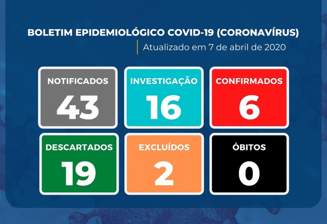 O mais novo boletim epidemiológico para Covid-19 (Coronavírus) e que aponta 11 novos casos notificados como suspeitos, passando de 32 para 43 notificações.