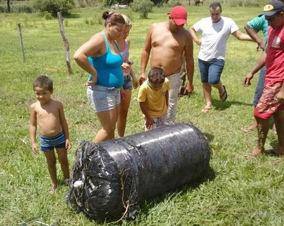 Os moradores dizem que o objeto caiu do céu. O dono da propriedade rural, de 68 anos, disse à Polícia Civil que ouviu um barulho muito alto de madrugada, como se alguma coisa tivesse caído ao solo, mas voltou a dormir. No início da manhã ele encontrou o objeto semelhante a um tanque de combustível envolto de fita da cor preta.