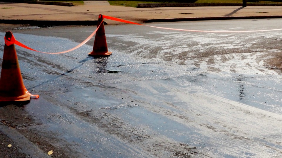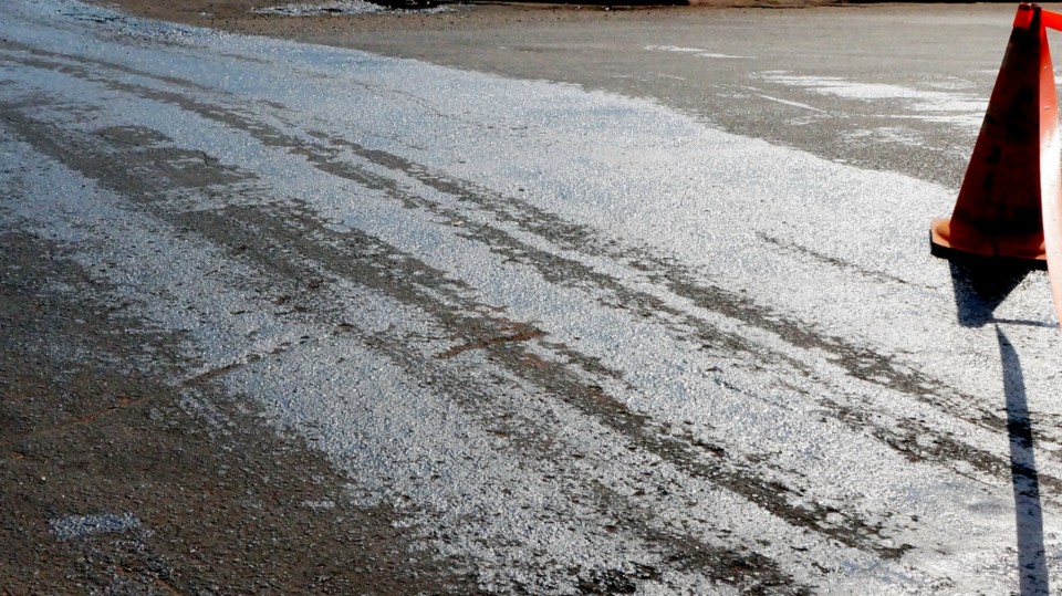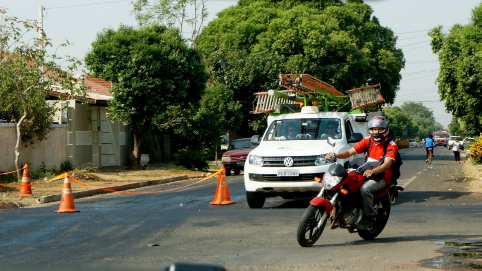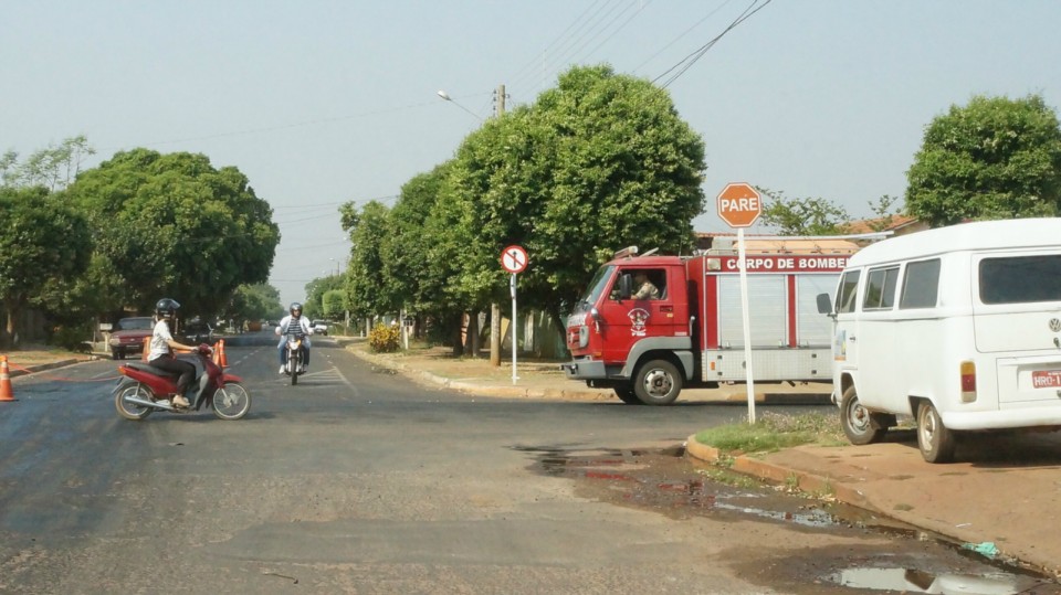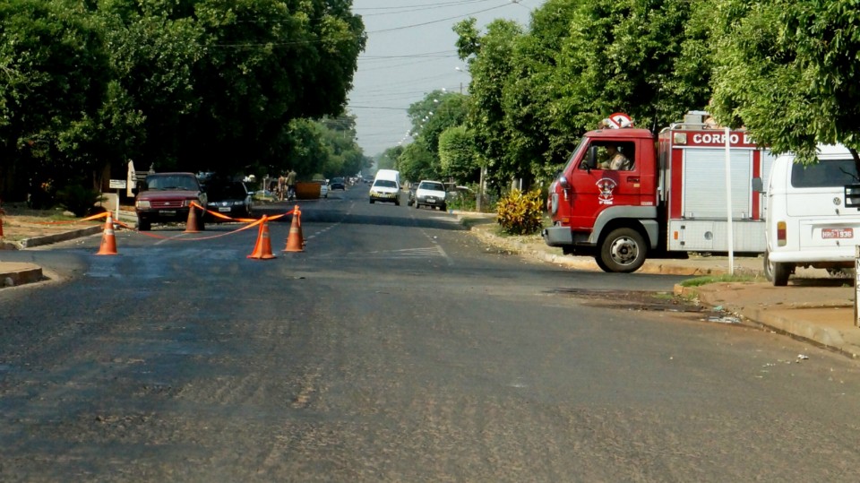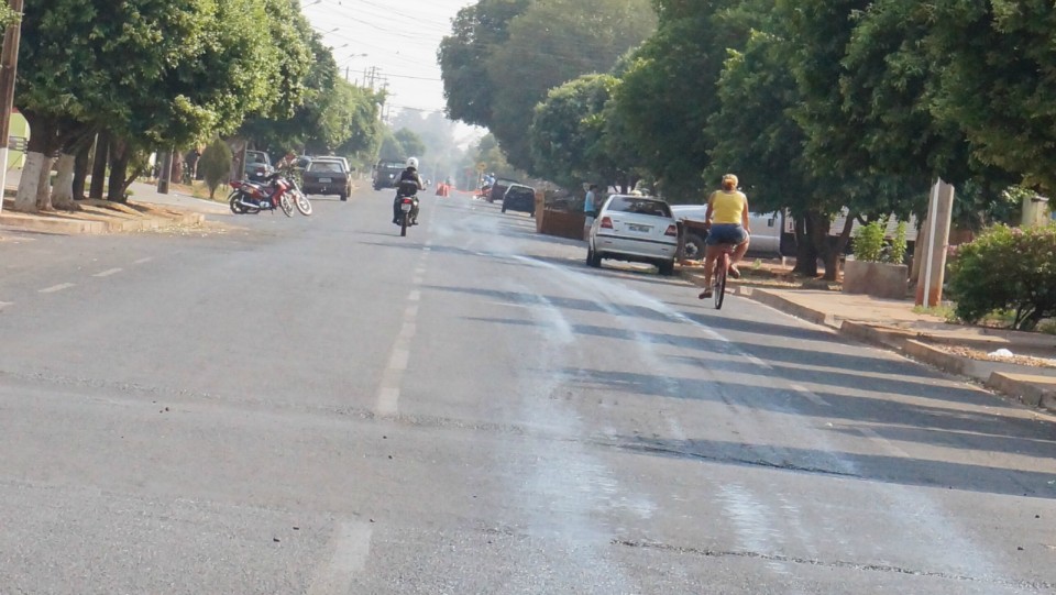Óleo na Duque de Caxias causa acidente e prejudica o trânsito de Três Lagoas