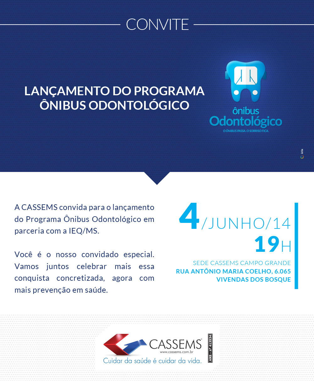 A Cassems, em parceria com a Igreja do Evangelho Quadrangular (IEQ) em Mato Grosso do Sul, realiza mais um projeto de prevenção, prezando a qualidade de vida da população sulmatogrossense. O “Ônibus Odontológico” levará atendimento bucal ao interior do Estado, com equipamentos e materiais de qualidade e a possibilidade de realizar tratamentos odontológicos, garantindo mais saúde aos beneficiários.