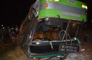 Um ônibus de viagem, com 40 passageiros, capotou na noite de ontem (12), na MS-141, entre Ivinhema e Naviraí, deixando 18 pessoas feridas. Este já é o segundo acidente com coletivos em menos de 15 dias nas rodovias de Mato Grosso do Sul.