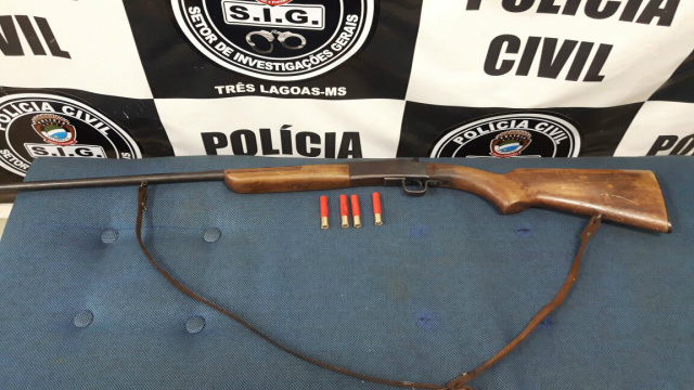 Diante da confirmação, os policiais, com a autorização da vítima, realizaram buscas no imóvel e ali localizaram uma espingarda calibre 36 com a numeração apagada e quatro cartuchos intactos do mesmo calibre.