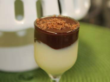 uma camada do creme branco reservado ma camada de creme de chocolate