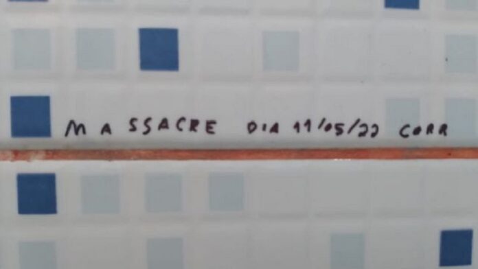 Aviso que dizia “Massacre dia 11/05/22 corre” foi encontrado no banheiro masculino de escola.