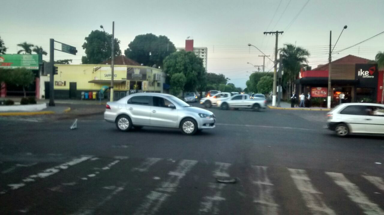 Pane no semáforo causa acidente na área central de Três Lagoas