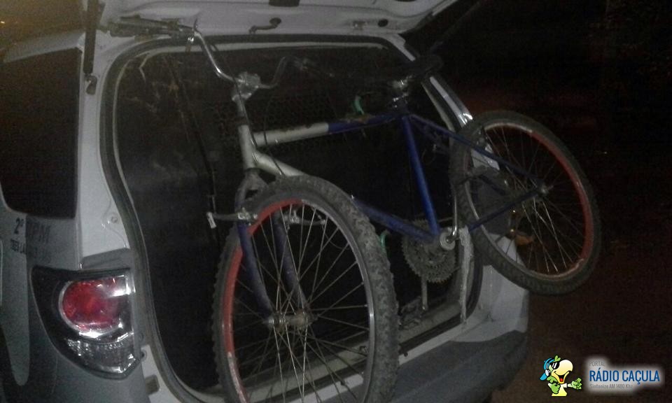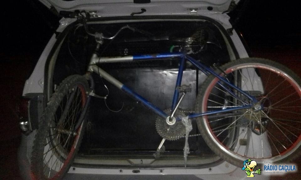 Em diligências pela região os policiais localizaram em meio a um matagal alguns dos produtos furtados abandonados próximo a um muro juntamente com R$42,00 e uma bicicleta, os autores não foram localizados.