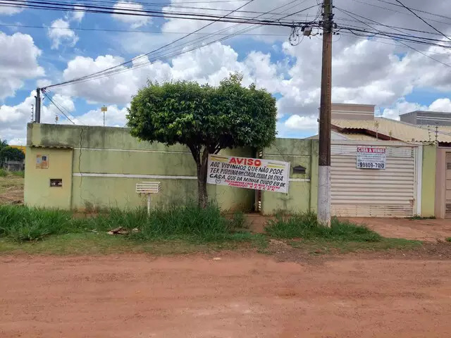 No Jardim Itatiaia, a casa possui dois textos na fachada, um dizendo que o local possui piscina e que está disponível para venda, enquanto o outro é o recado maior do que o anúncio.
