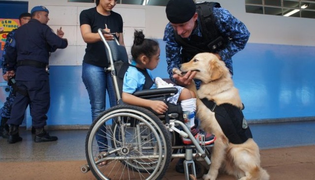 Com o objetivo de promover a inclusão social e facilitar a interação dos alunos com deficiência, a Guarda Civil Metropolitana iniciou o projeto de cinoterapia nas escolas da Reme (Rede Municipal de Ensino). Essa semana o cão Caio Maz está visitando a Escola da Educação Infantil Professora Oneida Ramos, no Jardim Campina Verde.