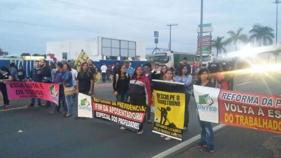 O movimento unificado de Três Lagoas aderiu à paralisação nacional que luta contra a reforma da previdência, a reforma trabalhista, a anulação da lei de terceirização e pelo fora Temer e desde a madrugada desta sexta-feira (30) interditam as duas principais rodovias que cortam a cidade.