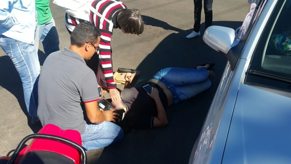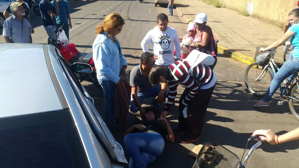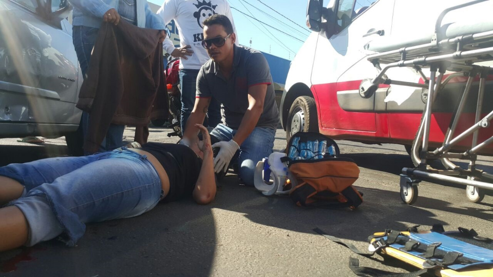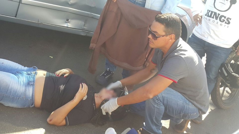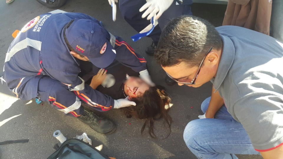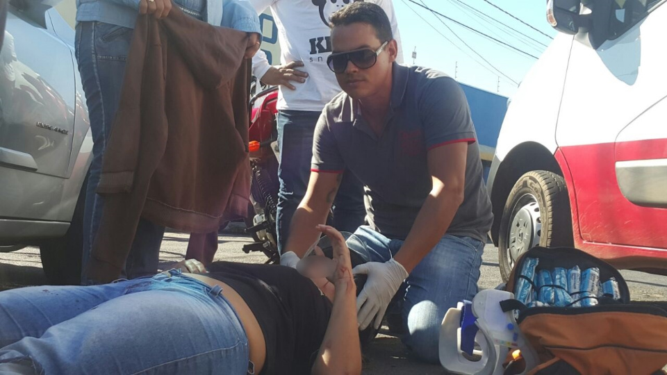 Mesmo de folga, um socorrista do SAMU que estava de folga e passava pelo local prestou os primeiros atendimentos a acidentada.