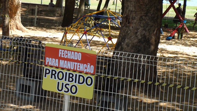 Jefferson relatou que na tarde da última quarta-feira (20) funcionários da administração municipal, fecharam o parquinho com fitas listradas e placas com os dizeres “Fechado para manutenção: proibido o uso”, não deram explicações sobre os motivos da interdição e também não foi divulgado o fechamento.