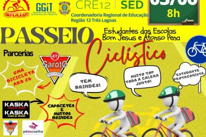 Três Lagoas (MS) – Acontece nesta sexta-feira (03) o passeio ciclístico, com os estudantes das Escolas Estaduais “Afonso Pena” e “Bom Jesus” participarão do Passeio Ciclístico organizado pela CRE12 – Coordenadoria Regional de Educação de Três Lagoas.