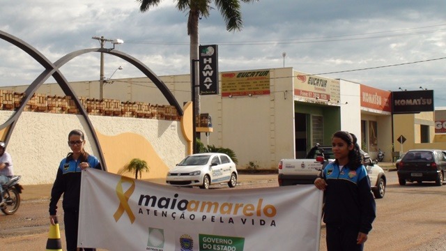 A Patrulha Mirim de Educação no Trânsito participou na manhã desta quinta-feira (12) de uma ação do movimento Maio Amarelo e com o auxilio da Polícia Rodoviária Estadual, Polícia Militar e secretária de trânsito, realizaram uma blitz educativa em frente ao CRASE – Coração de Mãe, localizado na Avenida Clodoaldo Garcia, com o intuito de divulgar a campanha e os hábitos seguros no trânsito.