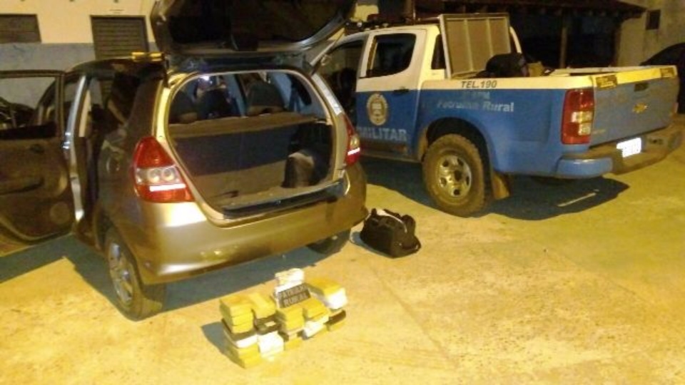 Dados da ocorrência policial indicaram que os militares realizaram um bloqueio em uma estrada vicinal, na região da cidade de Água Clara-MS e ao abordarem o motorista E.J.O de 46 anos, que dirigia um veículo Honda Fit com placas de Mirassol-SP, encontraram 33 Kg da droga em um fundo falso no banco traseiro do carro.