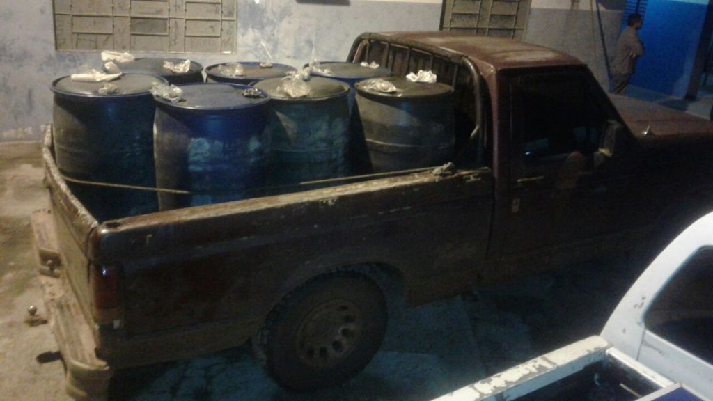 Segundo a Polícia, a equipe estava em patrulhamento ostensivo pela estrada vicinal paralela a Br 262 na altura do Km 140 quando avistaram um veículo, Ford F1000 de Água Clara, que transportava de forma irregular 07 galões com óleo diesel, totalizando 1400 litros.