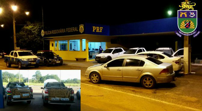 Policiais Militares da Patrulha Rural do 2°BPM em ação conjunta com a PRF (Polícia Rodoviária Federal) prenderam sete pessoas transportando 1609 kg de drogas, na tarde de terça-feira (2).