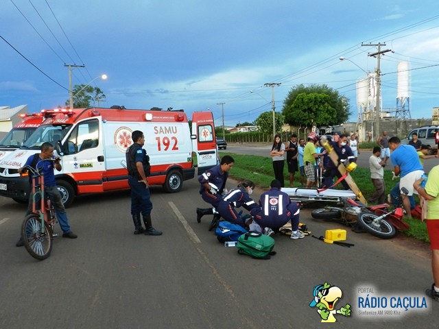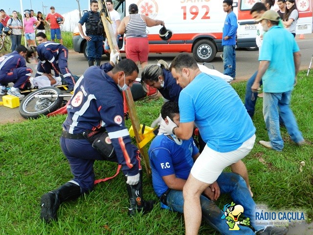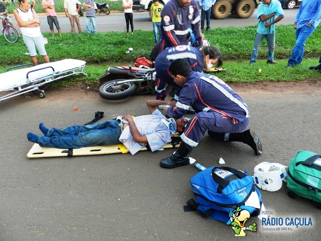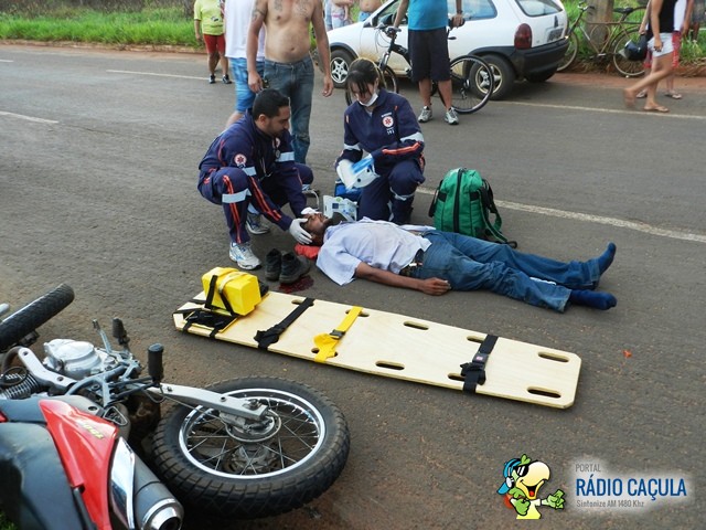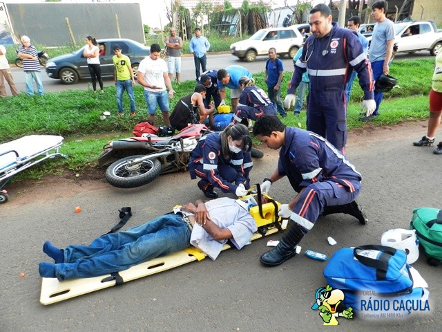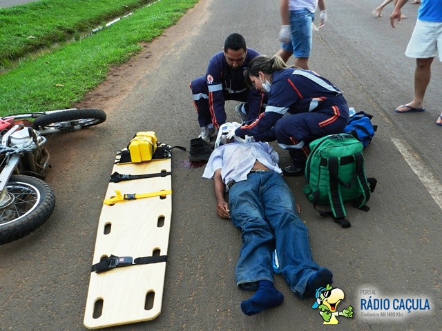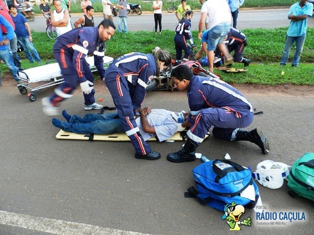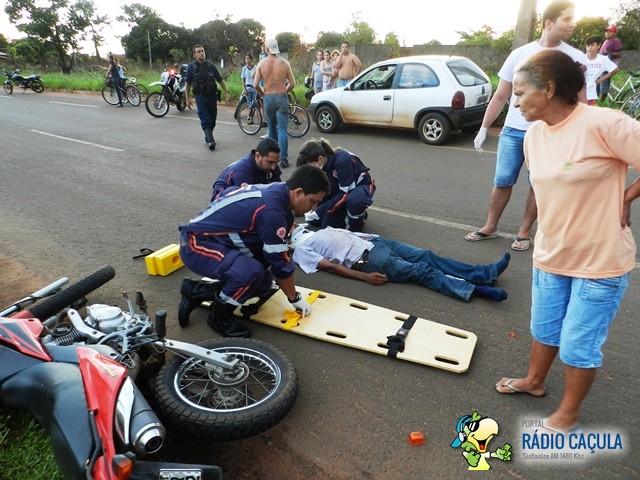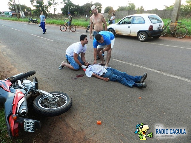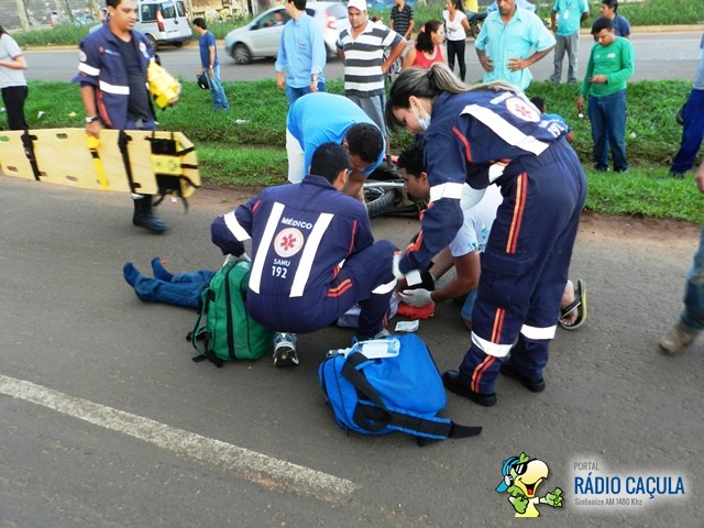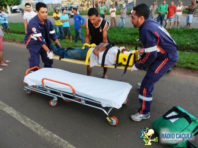 Por volta das 17:30hs na Avenida Ponta Porã cruzamento com a Rua Michel Tomé no Bairro Jardim Alvorada, Pedro Rodrigues Peixoto (43) foi atropelado por uma moto NX Bros/Honda conduzida por Alan Bispo da Silva (19).