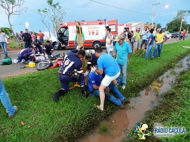 O motociclista não conseguiu evitar a colisão e com o impacto a vítima, foi lançada ao solo sofrendo escoriações pelo corpo e cortes na cabeça com intenso sangramento.