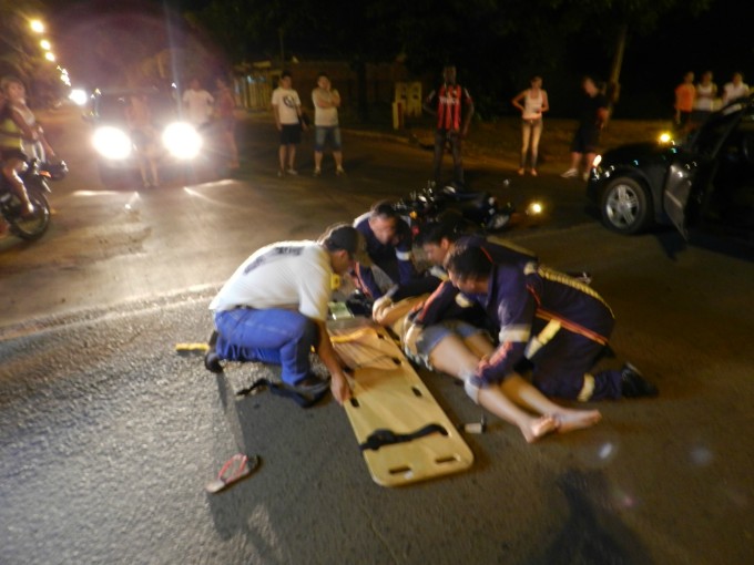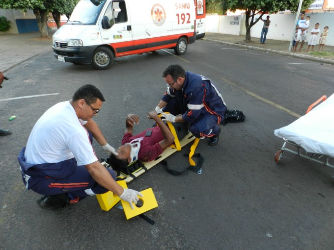 Passados sessenta minutos, já às 17hs um rapaz de 23 anos, conduzia sua motocicleta Yamaha de cor preta, pela Rua Paranaíba quando tentou desviar de uma pedra na via e caiu, sofrendo escoriações no lado direito do ombro. Ele foi socorrido pelo SAMU e encaminhado ao PAB. (Pronto Atendimento Básico).