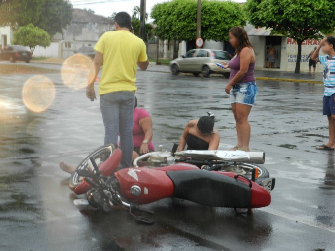 Neste acidente na Ranulpho Marques Leal, o condutor do veículo Gol, também invadiu a preferencial e bateu na motociclista.Foto: Rádio Caçula