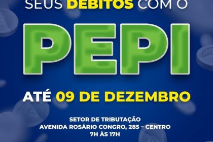 A Prefeitura de Três Lagoas, por meio da Secretaria Municipal de Finanças, Receita e Controle (SEFIRC), comunica que o prazo de adesão ao Programa Especial de Parcelamento Incentivado (PEPI) vai até o próximo dia 9 de dezembro.